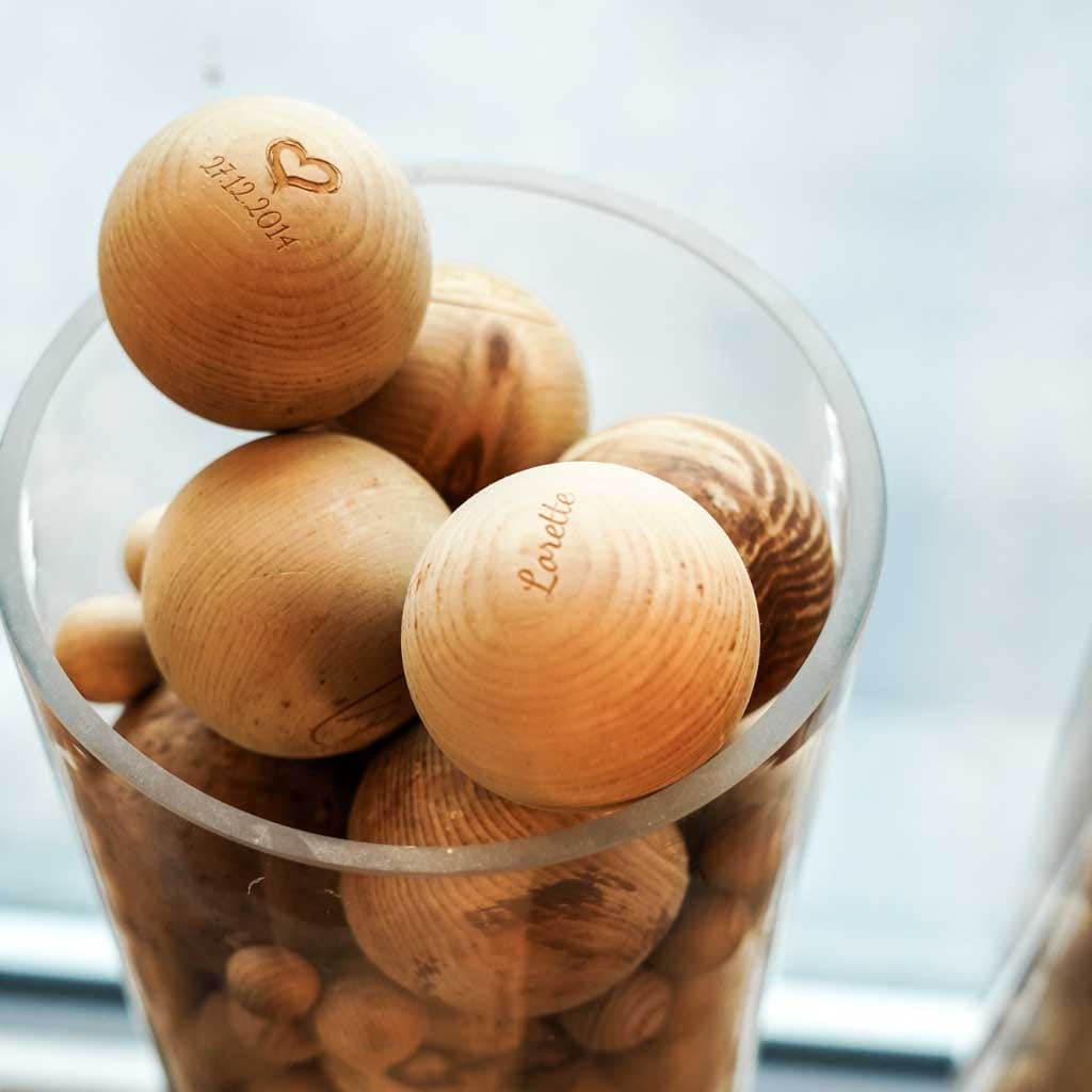 • einzigartiges Unikat – jede Kugel unterscheidet sich durch Struktur Harzeinschlüsse und Jahresringe